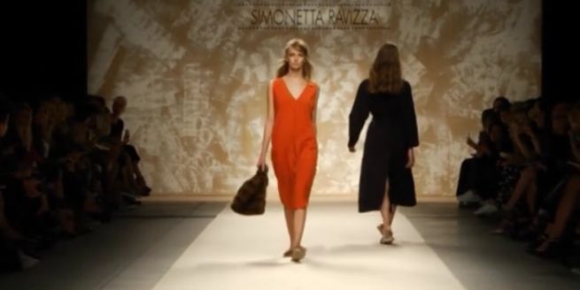 Sfila a Milano la fluidità da Simonetta Ravizza. Una sinuosità che si apre e si chiude, fluttua ed ondeggia con una grazia che non inquieta ma riposa per intero lo sguardo. Lo accarezza, grazie anche una palette variegata, dove tinte neutre, marroni bruciati e arancioni assolati si dividono equamente il guardaroba della donna del brand.